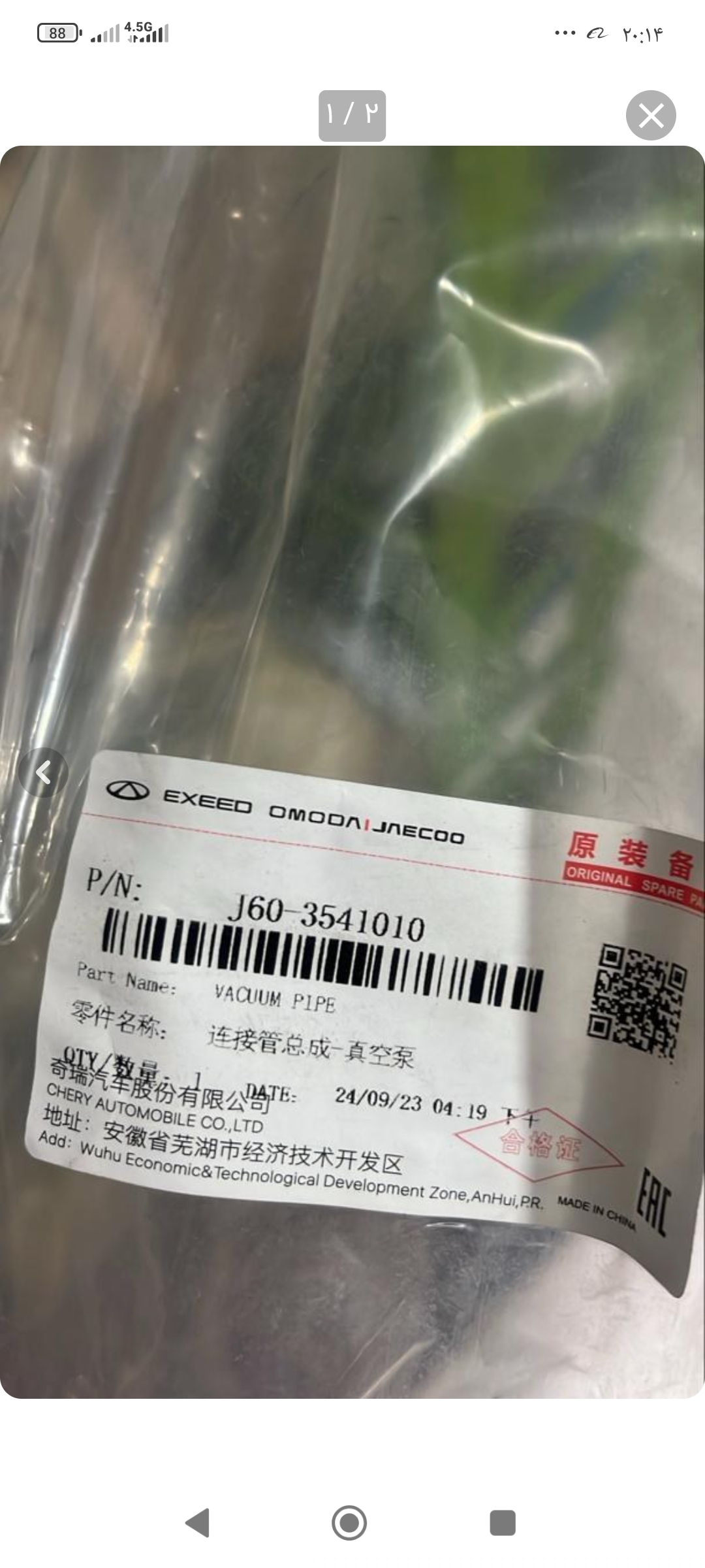 شیلنگ وکیوم بوستر ترمز آریزو 5 اصلی شرکتی